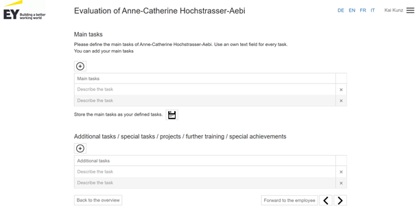 You can also forward the entry of the main tasks to the employee by clicking on "Forward to the employee".