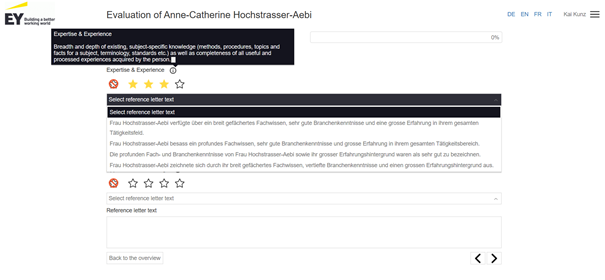 After the evaluation, click on “Create reference letter”. This will create the Word document.